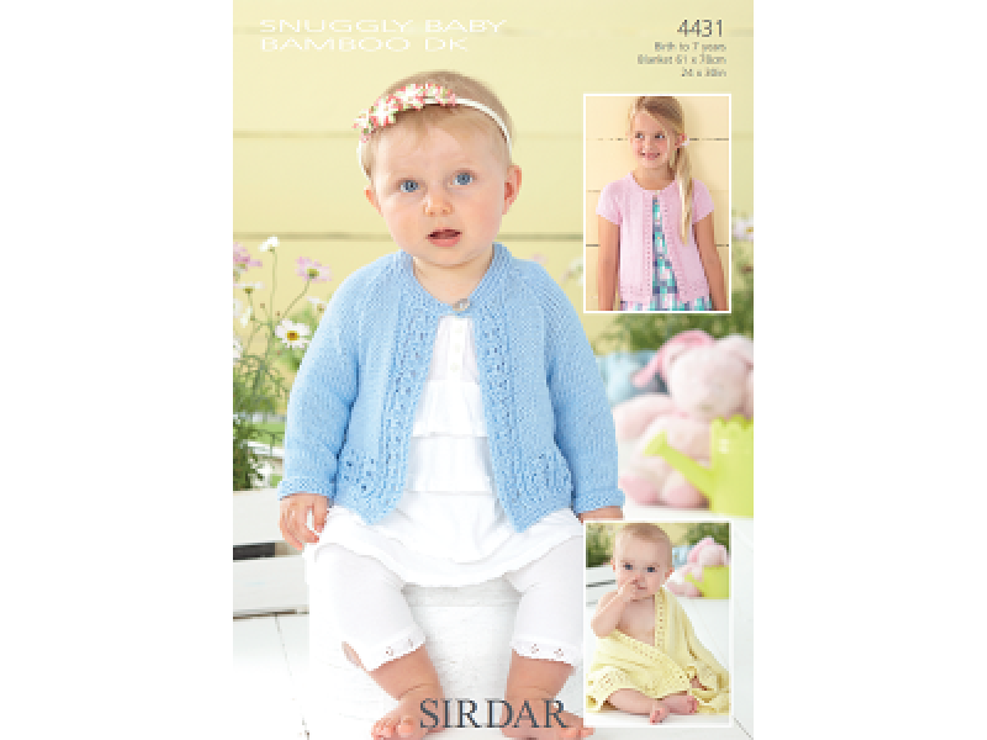 Sirdar Snuggly Baby Bamboo DK 4431 Cardigans and Blanket 0-7 years Downloadable Knitting Pattern