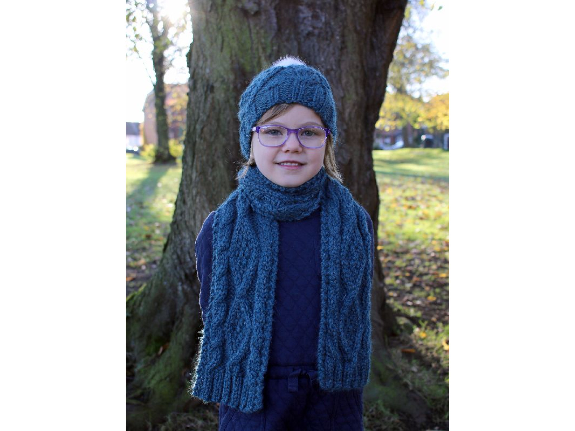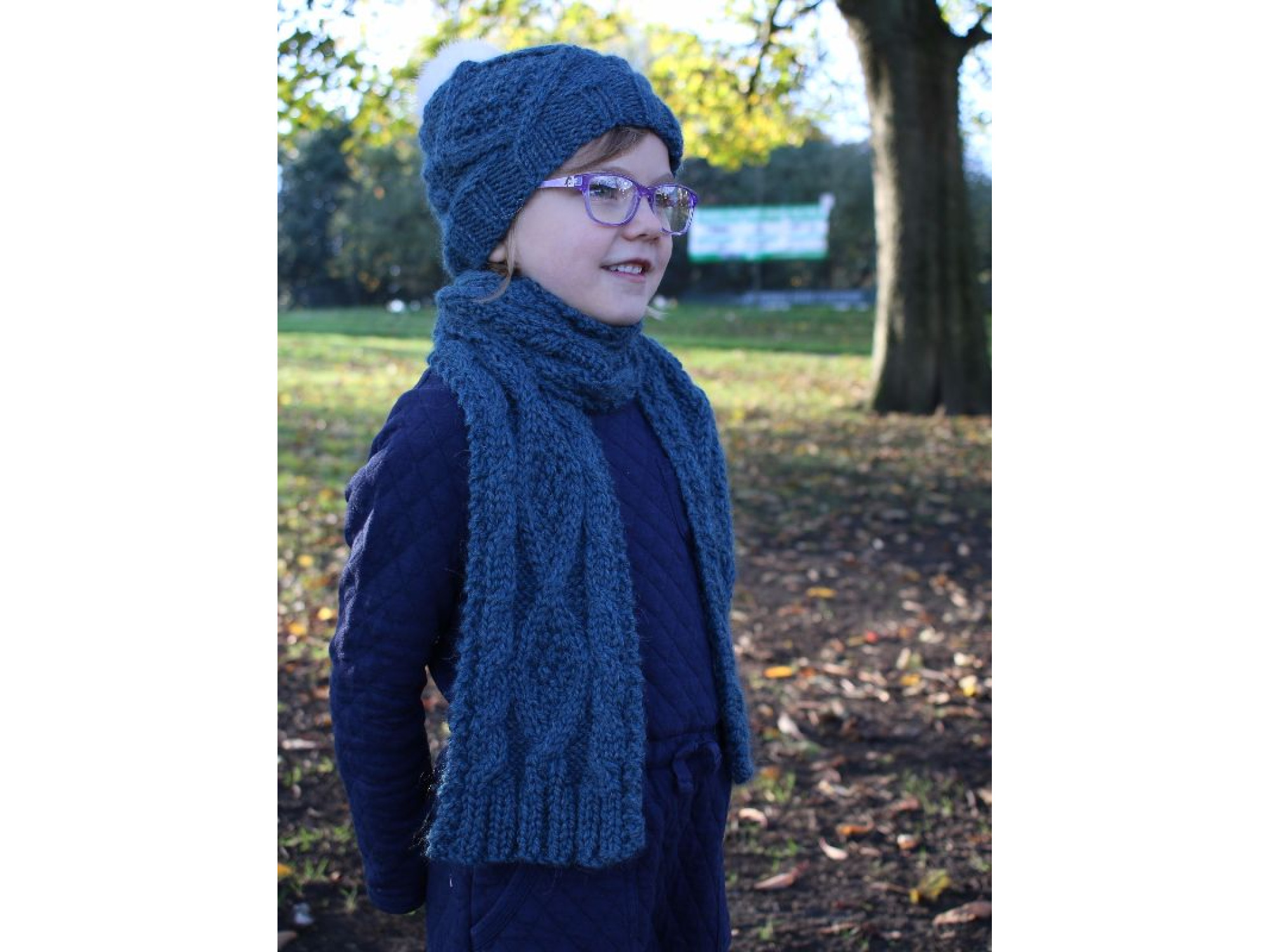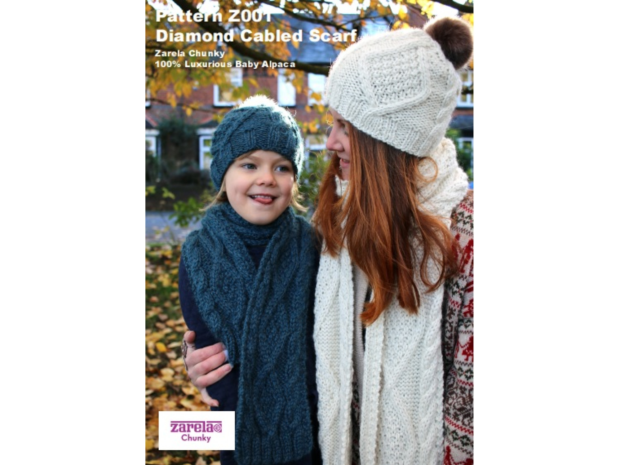 Knit in gorgeously soft Zarela Chunky 100% Luxurious Baby Alpaca. This generous scarf features traditional Aran patterns with a modern twist. The scarf features a Diamond Cable pattern, matching ribbing worked at both each end.