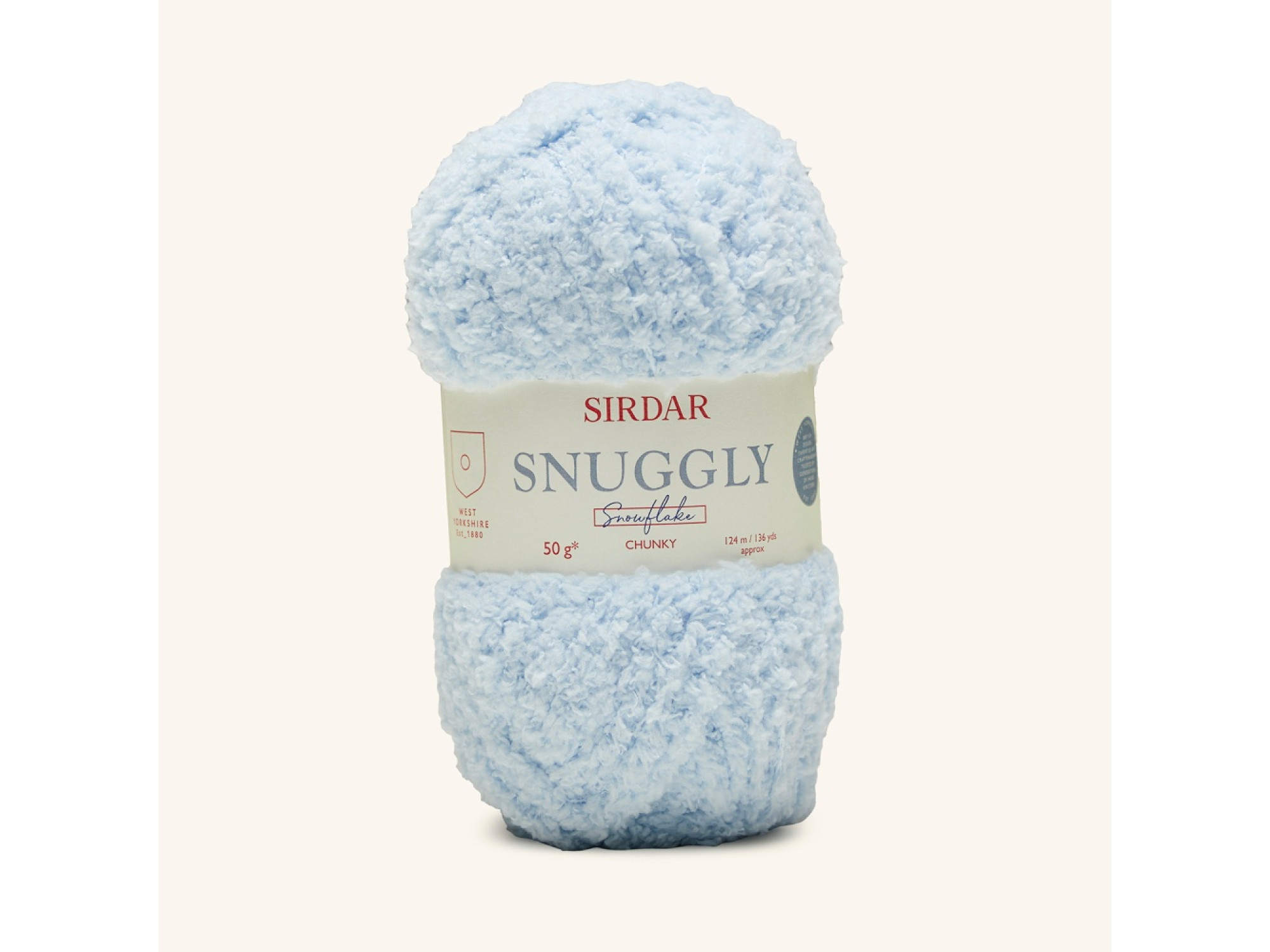 Sirdar Snuggly Snowflake Chunky now available in 50g balls. It is a soft fluffy yarn and great for cuddly quick knits. It is ideal for beginners as the fluffy texture makes basic stitches in simple shapes look super cute. Available in a modern palette inspired by a cosy bedtime.