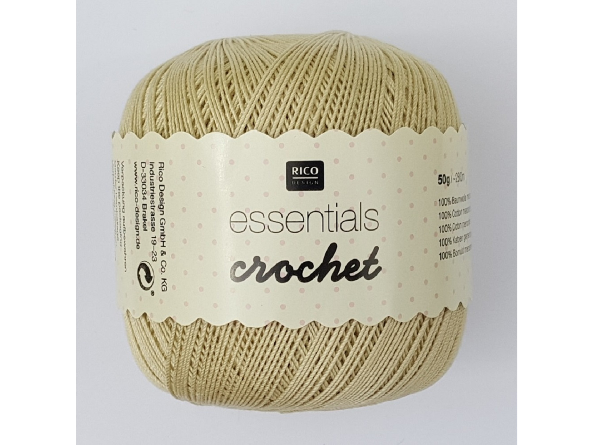 Essentials Crochet in 100% mercerized cotton. In a wide range of glorious shades this cotton is perfect for delicate lacey patterns, fine craft work, edging and trims. A gentle wash at 30 degrees advised.