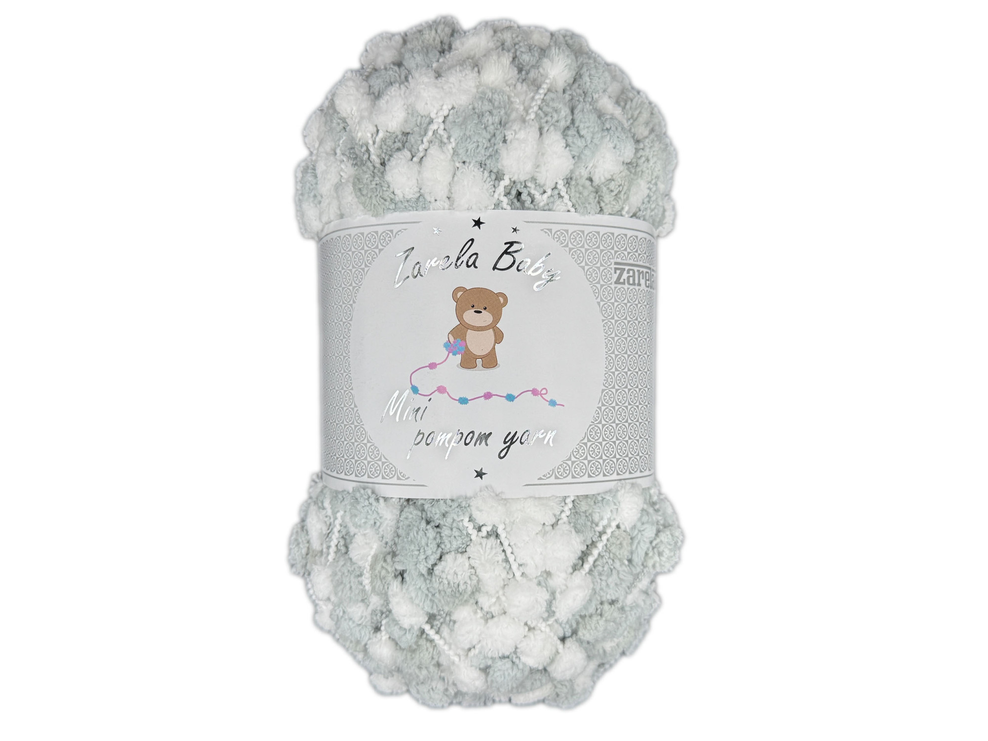Zarela Baby Mini Pom Pom Yarn 200g - M02 White-Grey