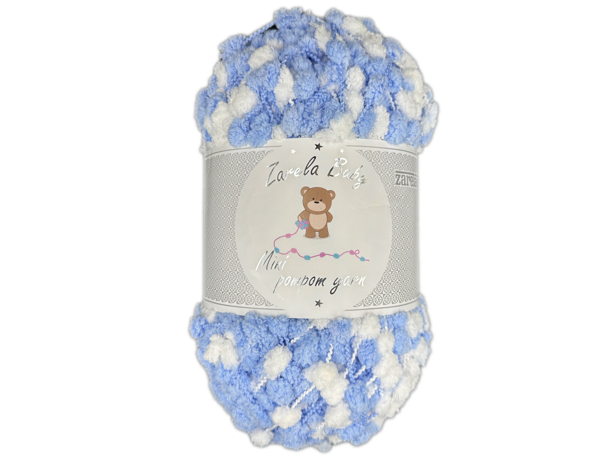 Zarela Baby Mini Pom Pom Yarn 200g - M05 White-Blue