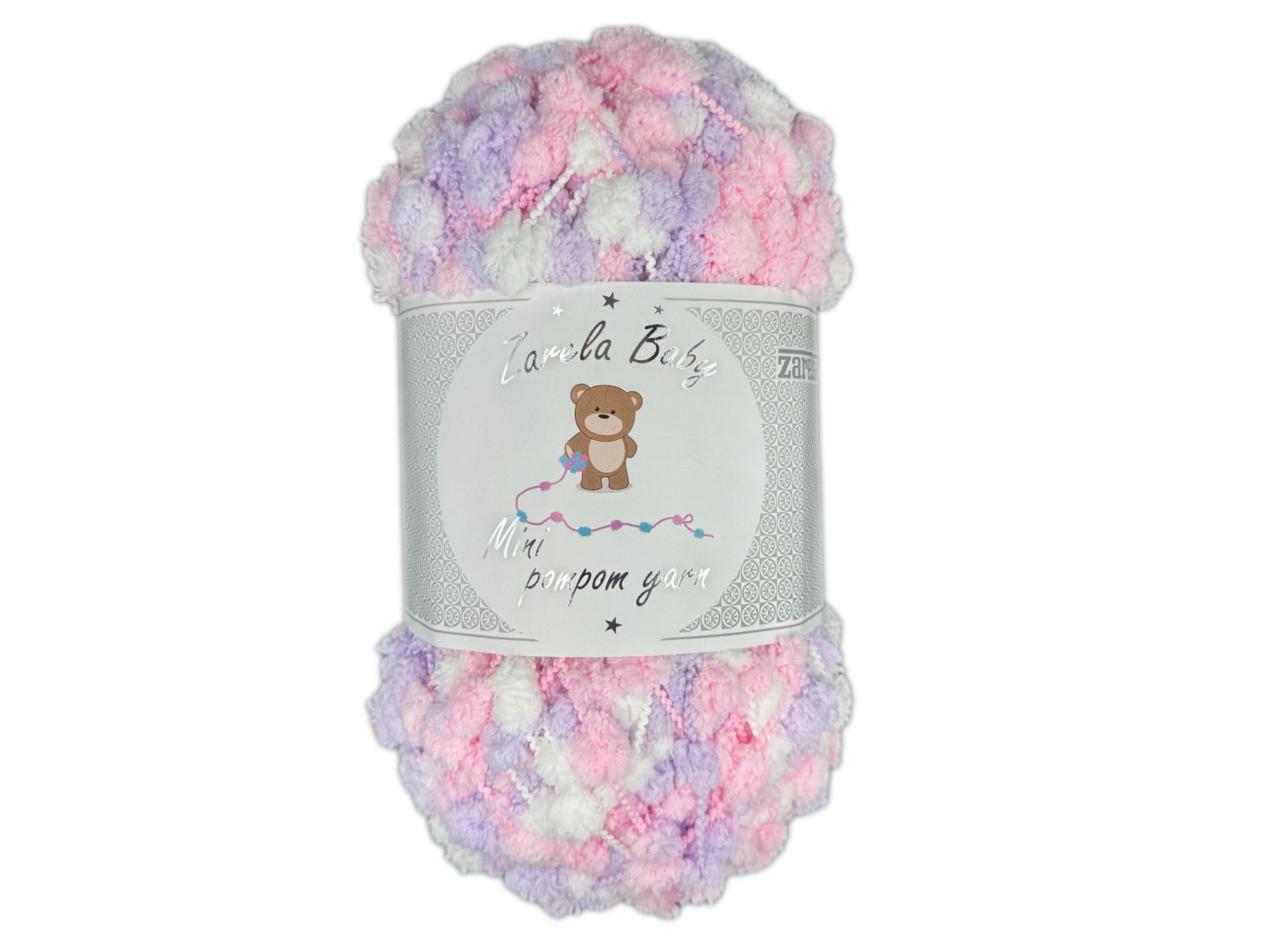 Zarela Baby Mini Pom Pom Yarn 200g - M12 White-Pink-Lilac