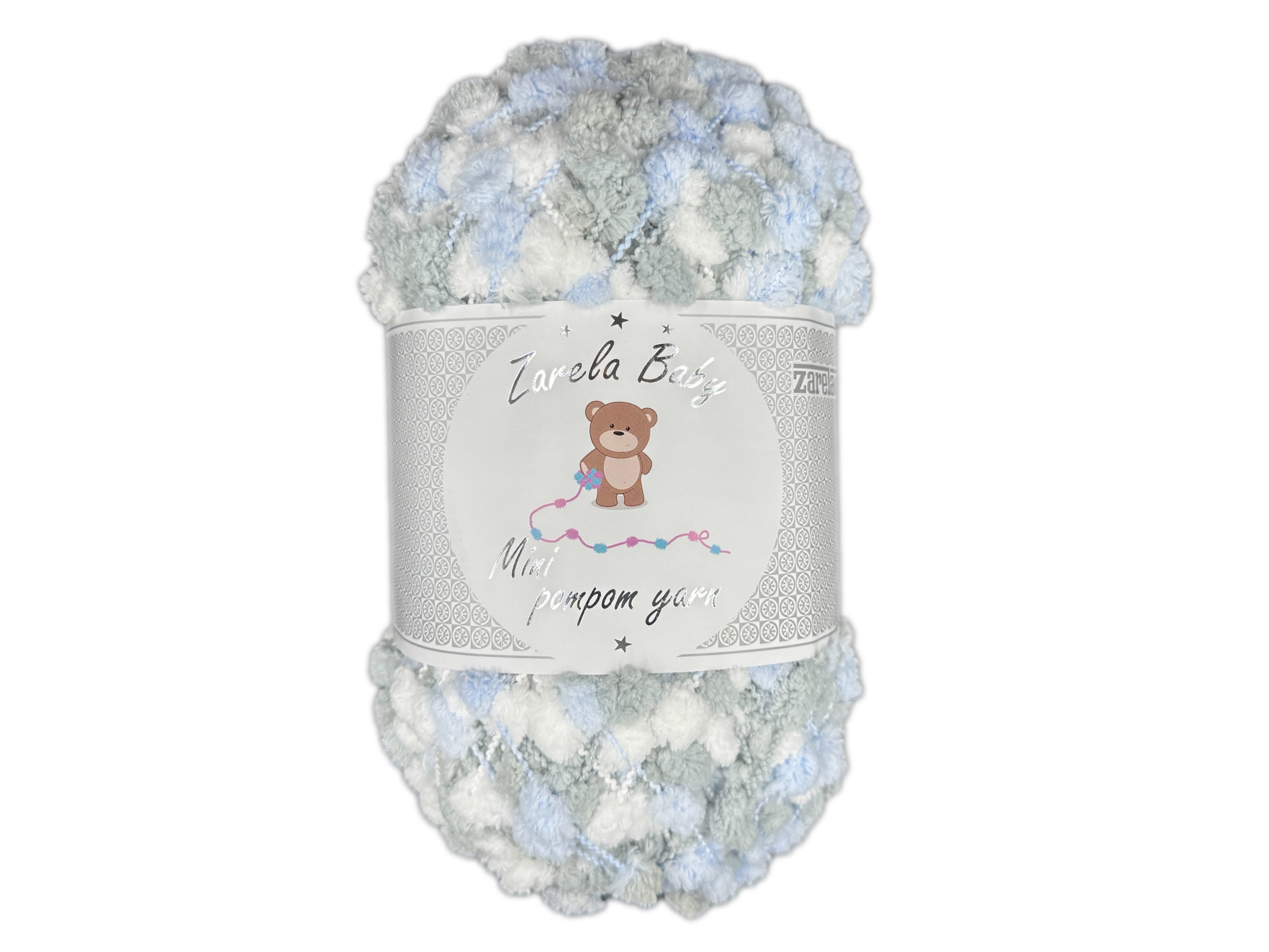 Zarela Baby Mini Pom Pom Yarn 200g - M17 White-Grey-Blue