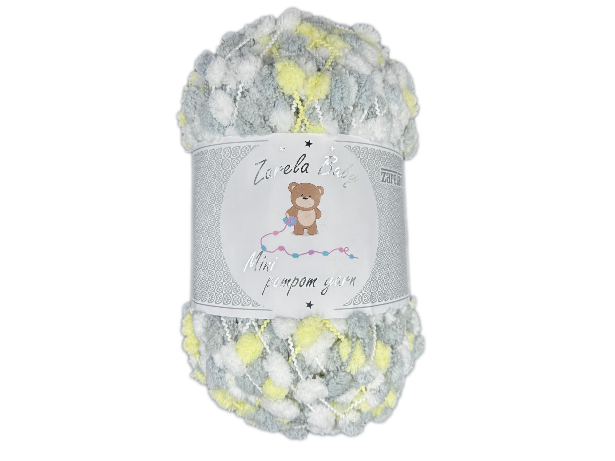 Zarela Baby Mini Pom Pom Yarn 200g - M24 White-Grey-Lemon